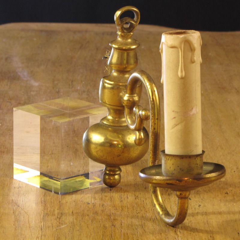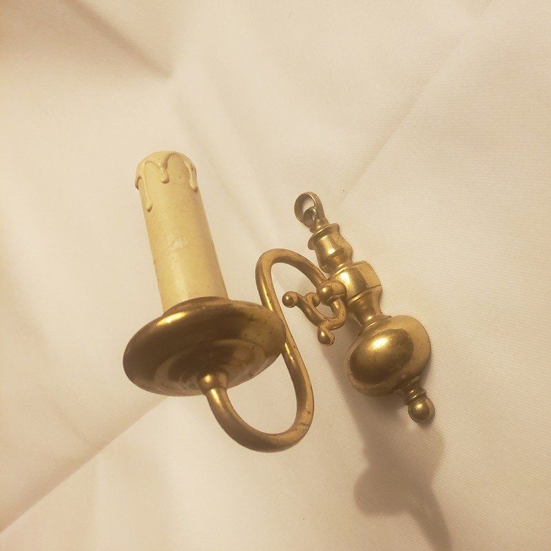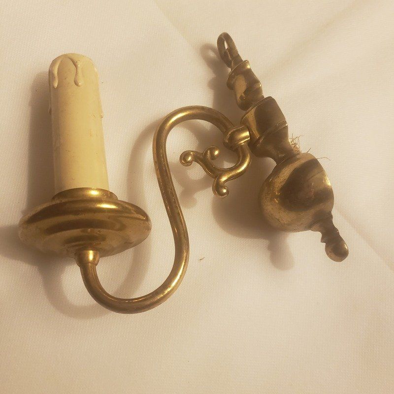 Applique murale en laiton doré et patiné, au design inspiré des anciens bougeoirs.
