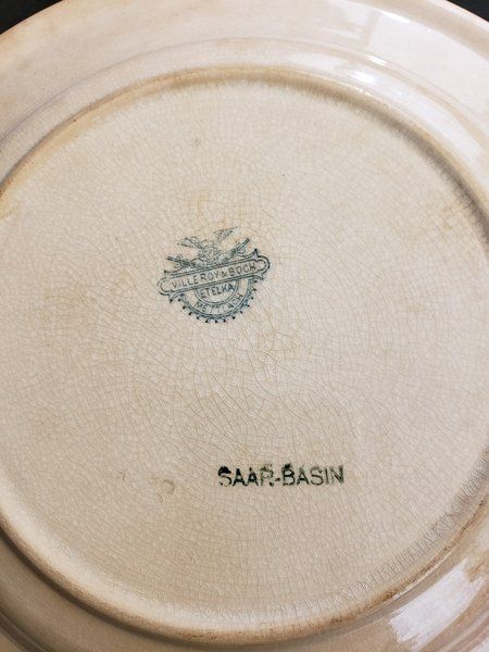 Très belle assiette ancienne Villeroy & Boch, en faïence fine, modèle “Etelka” (tampon lisible sous la pièce), fabriquée à Mettlach , datée entre 1919 et 1931.