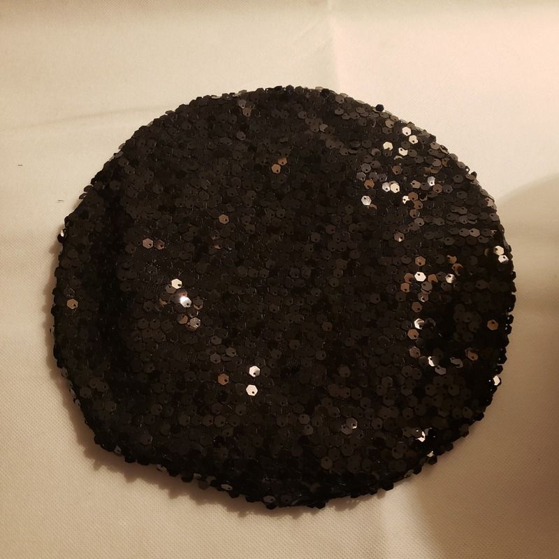 Béret chic en tissu pailleté noir - Pièce unique - Création artisanale