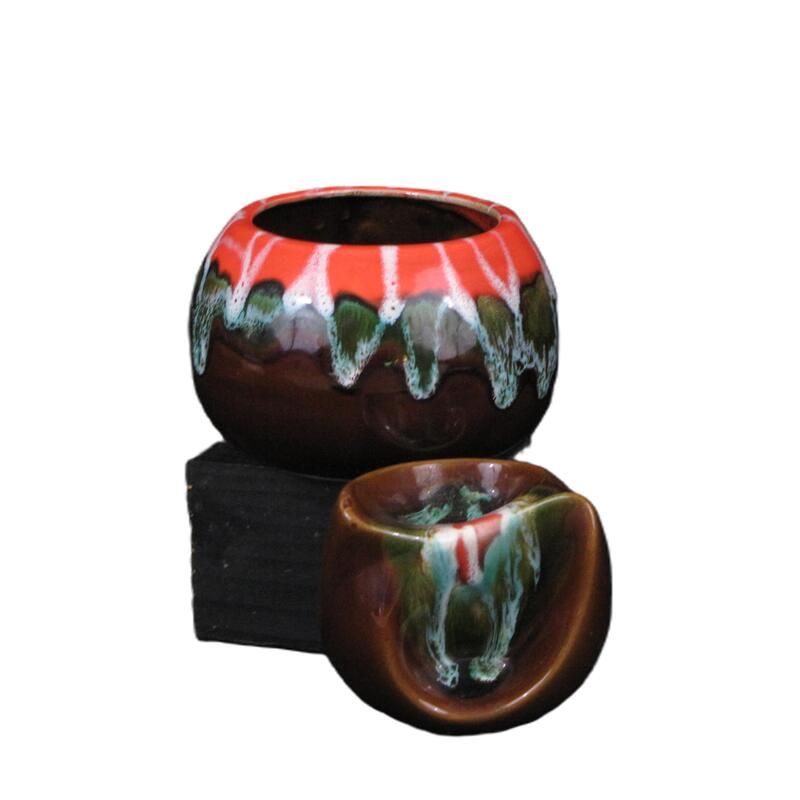 Cette pièce typique de la céramique artisanale française, aux formes, couleurs rétro et décoratives est idéale en objet de collection, boîte à bijoux, ou simple touche vintage colorée dans un intérieur design.