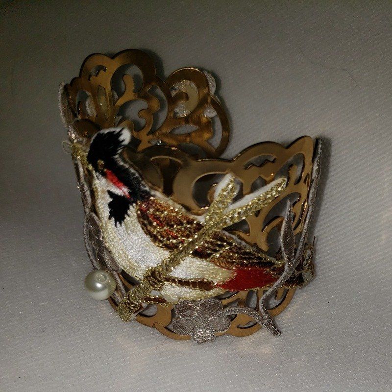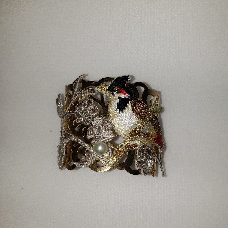 Couleurs et matériaux: Métal doré, applications d'oiseau et fleurs brodés et perles