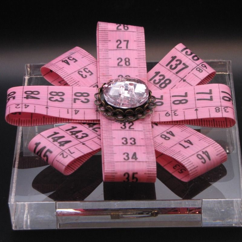 Broche centimètre rose et cabochon de strass