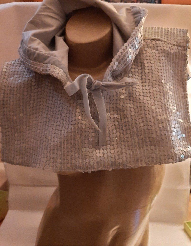 Cape col à Capuche en Paillettes grises – Pièce Unique -