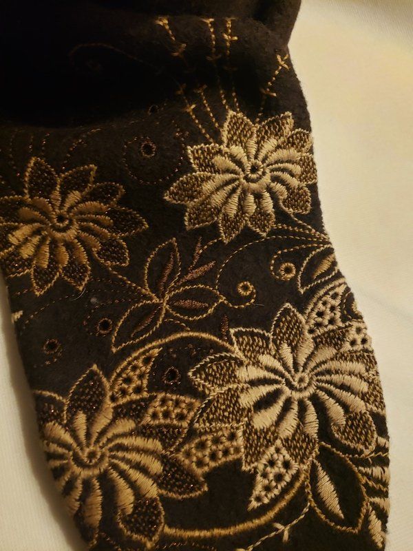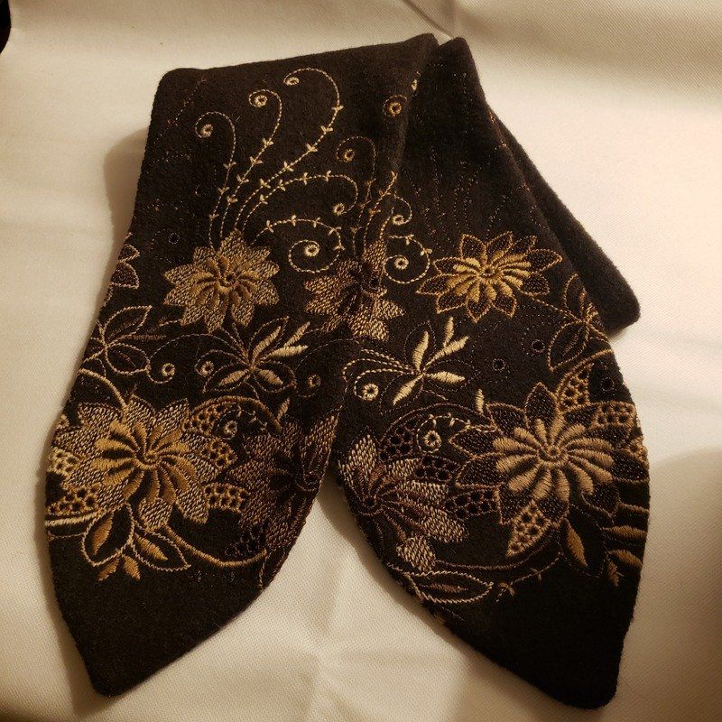 Elégante écharpe marron foncé - broderie florale – Pièce unique et raffinée
