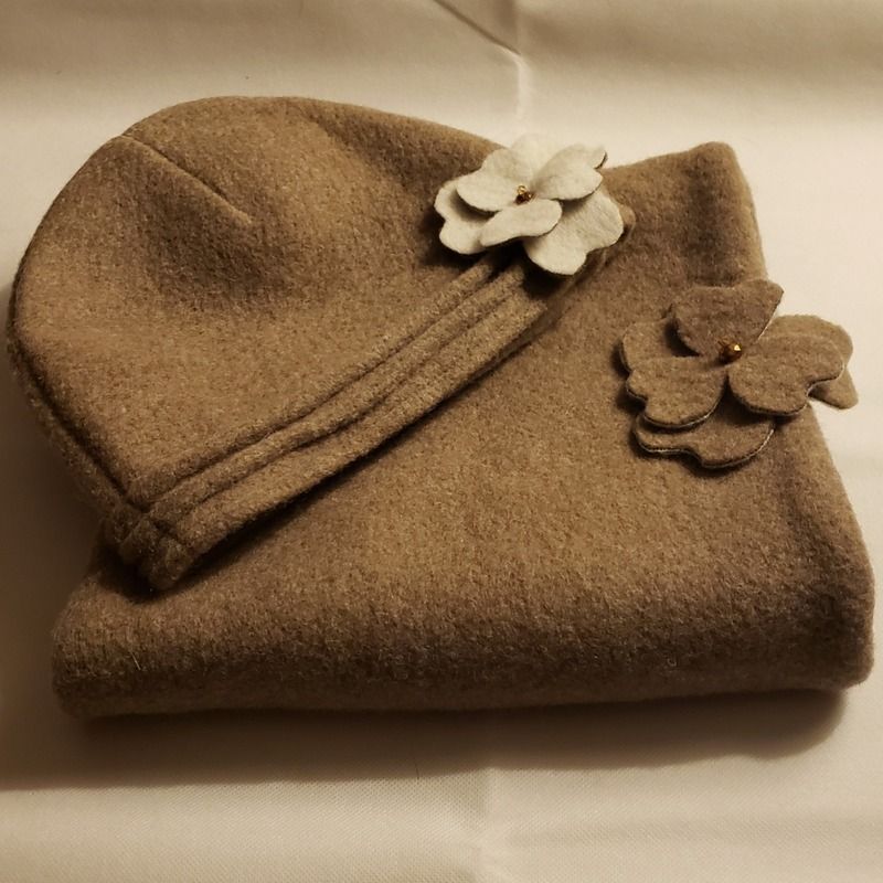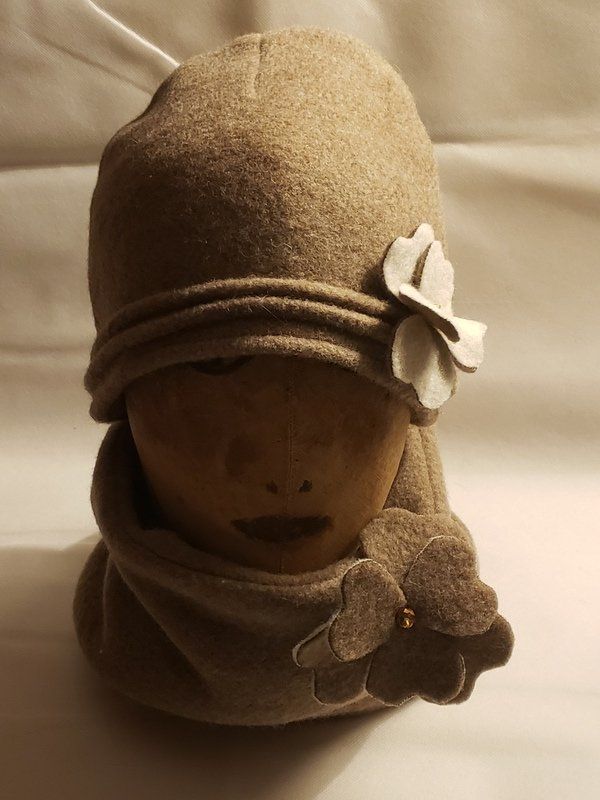 Ensemble snood + chapeau en laine bouillie beige – création artisanale