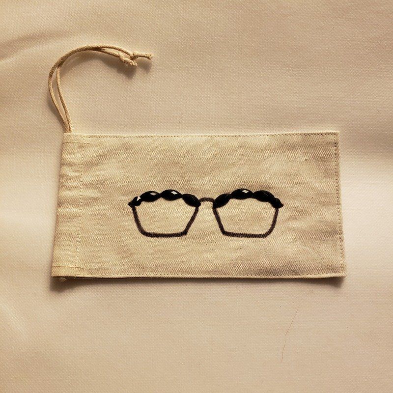 Etui à lunettes raffiné en toile de coton doublé et lien coulissant.