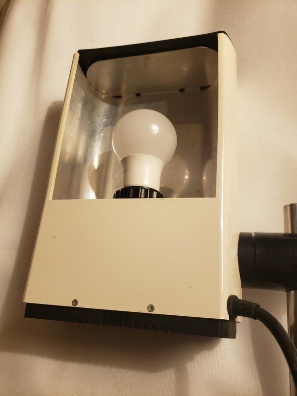 Réflecteur en ABS moulé pivotant et réglable en hauteur sur axe en métal chromé. Style industriel élégant