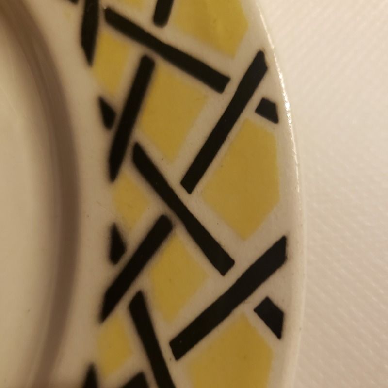 Le décor géométrique, jaune et noir, typique de l’époque lui donnent un aspect frais et contemporain malgré son âge.
