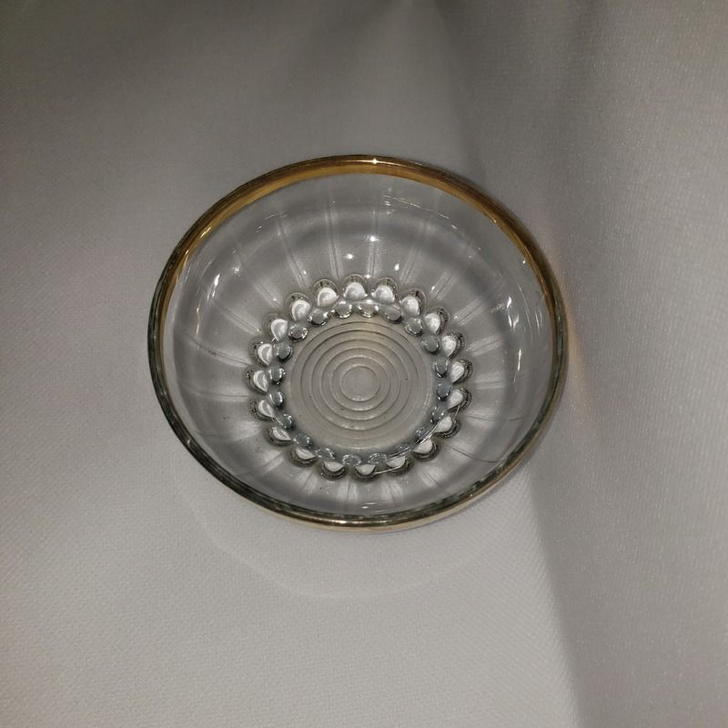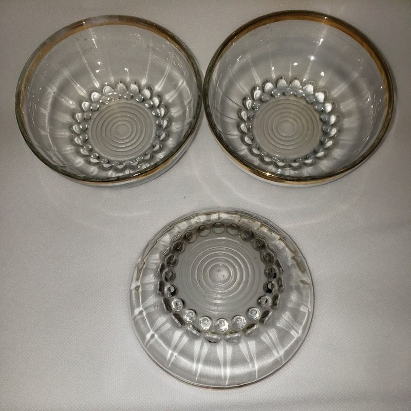 Lot de 3 petites coupelles en verre travaillé dotées d'une fine bordure dorée.