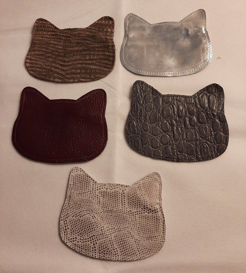 Mignon petit porte monnaie tête de chat- cuir marron clair