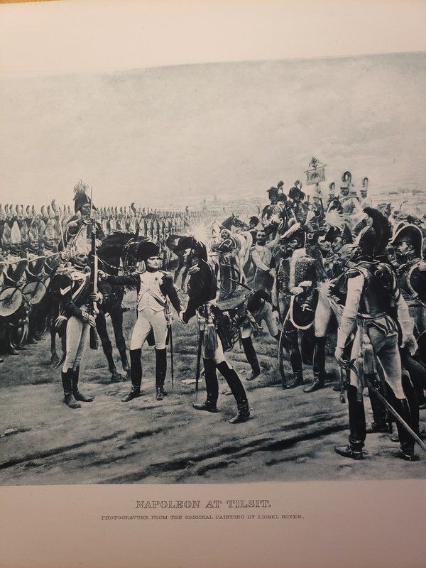 Légende imprimée : “Napoléon at Tilsit – Photogravure from the original painting by Lionel Royer”