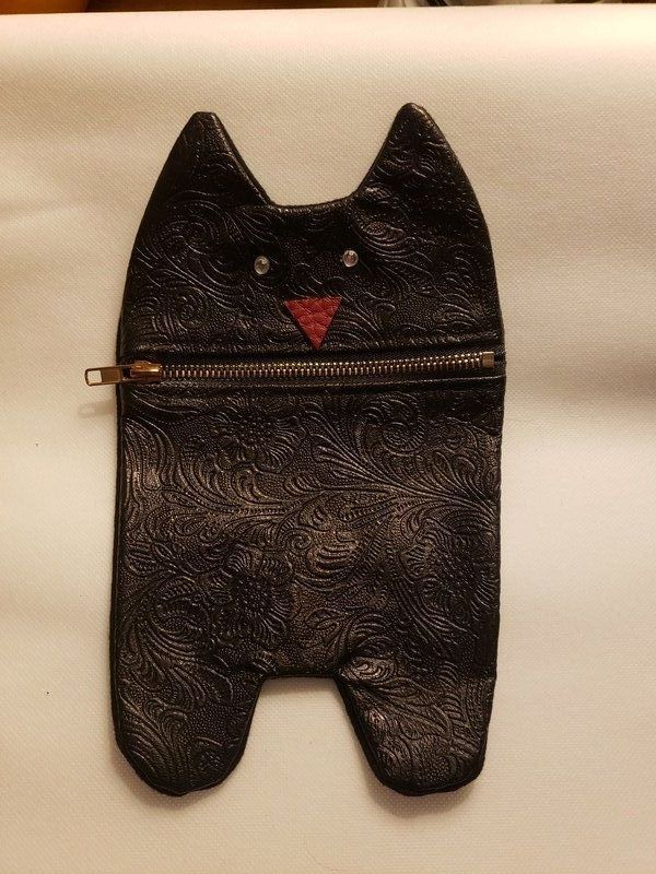 Pochette en véritable cuir - Fait main- Forme de chat mignon