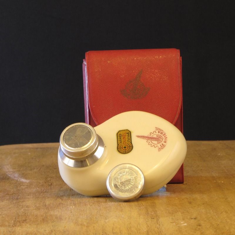 Rare, cet ancien rasoir de voyage gyroscopique RIVIERA, année 50 est en bon état de marche mais c’est surtout une belle pièce de collection pour amateurs d’objets vintage et de design rétro.