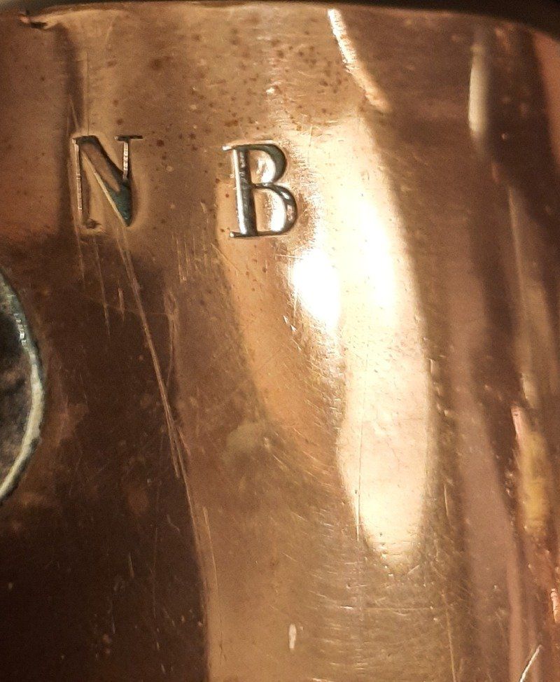 Certaines portent les initiales poinçonnées “N.B.”dans le cuivre. Ce marquage témoigne d’un usage en cuisine professionnelle.