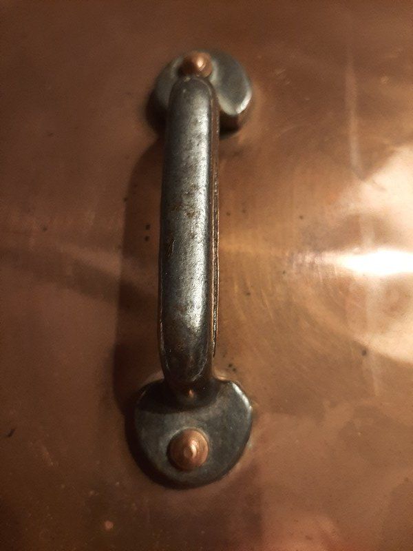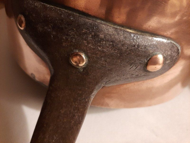 Ayant beaucoup servies ces casseroles ne sont pas toutes identiques. Leur patine cuivrée varie légèrement et leur cuivre est, pour certaines, déformé à certains endroits.