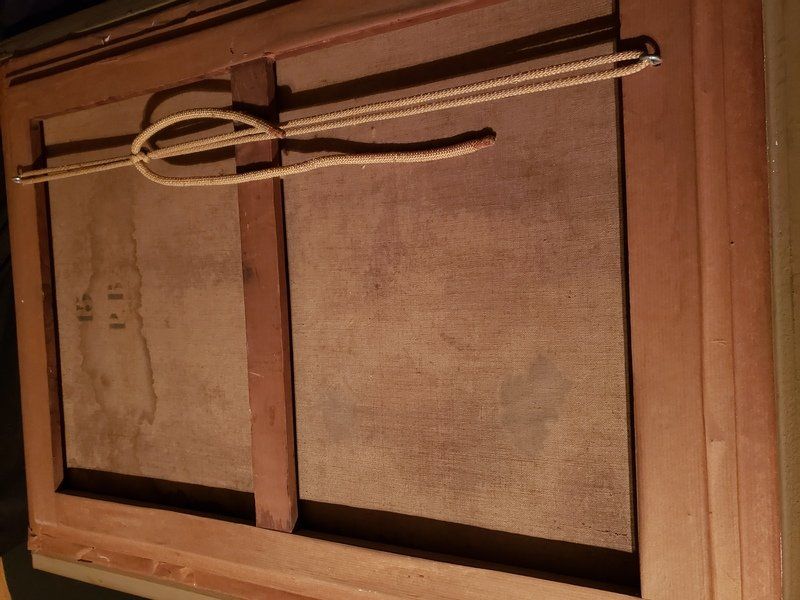 Un très joli cadre en bois doré d’origine l’accompagne et permet immédiatement de l’accrocher au mur.